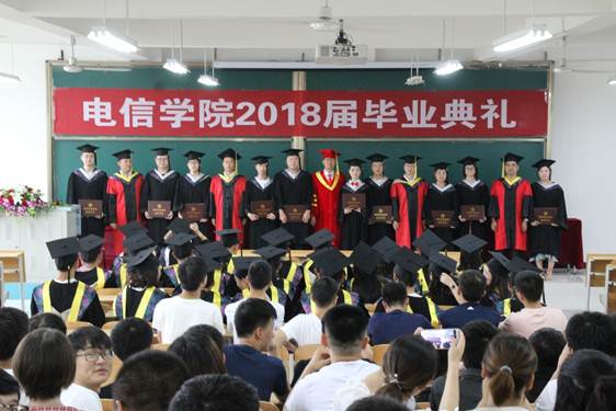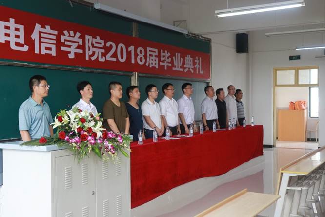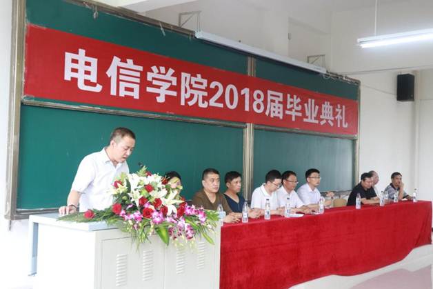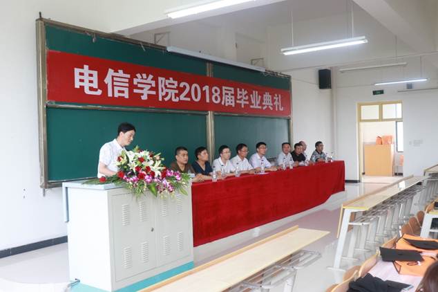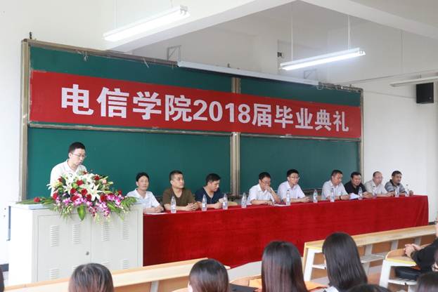 计算机系教师成典勤副教授代表教师发表,表达了全体教师对学生的关心与殷切希望。毕业生代表电子与信息工程系陈淦发言,总结四年来所学知识,深切表达对学院领导、老师的感激之情和对同学的不舍之情,以及即将踏入社会的坚定信心。