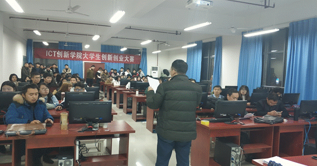 1月3日晚7:00,买球体育官方网站在逸夫科技楼举办了第二届ICT创新学院“移动互联网应用”创新创业大赛决赛,评委由学校招就处常权记副处长、买球体育官方网站院长陈守满教授、副院长王克刚教授、计算机系梁建勇老师、邹超然老师、电子工程系的邹圣雷老师,以及云间科技有限公司的2名行业专家共8人组成。
