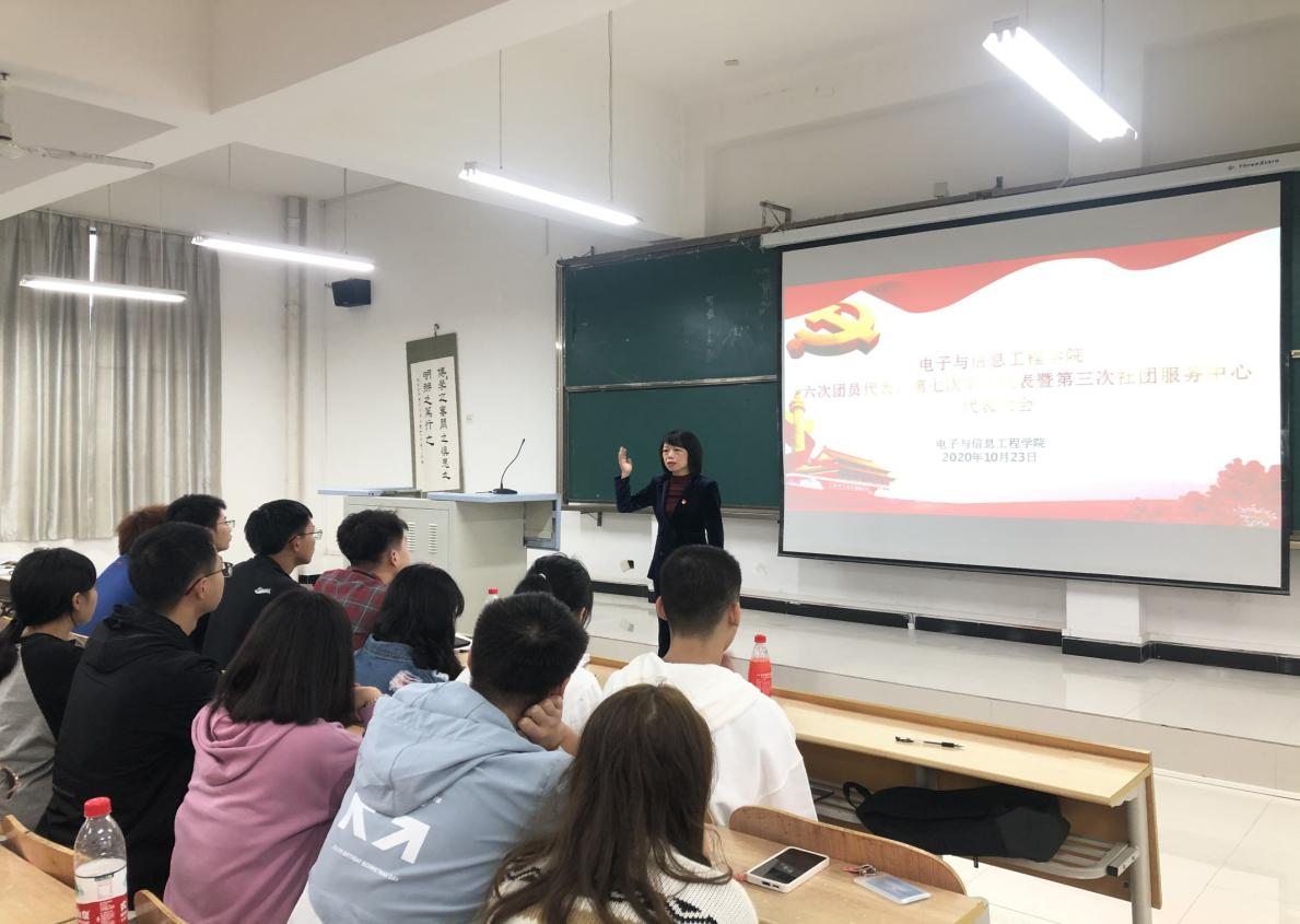 10月23日下午4点,买球体育官方网站团总支在1201教室顺利举行了买球体育官方网站第六次团员代表、第七次学生代表大会暨第三次社团服务中心代表大会。买球体育官方网站党总支书记于咏梅;学生工作办公室主任石纭昊;党总支组织委员、学生第一党支部书记成英丽;学生第二党支部书记、团总支书记李章雨、辅导员程晓梅老师出席此次会议。上一届团总支、学生会、社团服务中心主要学生干部以及2018、2019级班团干部代表与学生代表参加了大会。