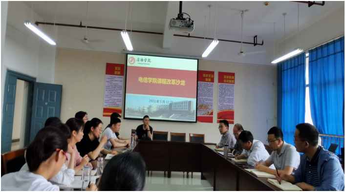 5月12日下午,买球体育官方网站数字媒体技术、电子商务、信息技术教研室在逸夫楼B702联合举行课程改革沙龙活动,围绕“信息技术基础课程如何改革?”的主题进行深入讨论交流。买球体育官方网站陈守满院长、王克刚副院长莅临指导本次课程改革活动,教研室全体教师参加本次会议。