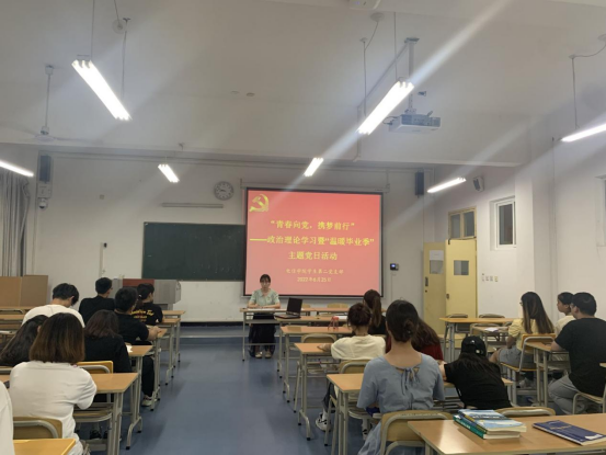 青春心向党,奋斗践初心。为加强毕业生党性教育,激励广大党员不忘初心、牢记使命,鼓励毕业生党员以更加饱满的热情投入新的学习和工作,继续发挥好党员的先锋模范作用和表率作用。6月25日下午,买球体育官方网站学生第二党支部在江北校区1319教室开展政治理论学习暨“青春向党,携梦前行——温暖毕业季”主题党日活动。买球体育官方网站学生第二党支部书记李章雨,全体党员参加本次会议,大会由李章雨主持。