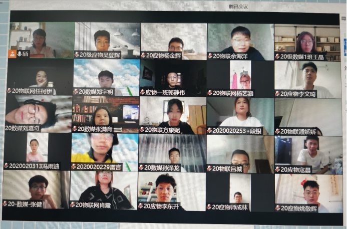 9月9日,买球体育官方网站2020级物联网工程、数字媒体技术、应用物理三个专业召开了线上新学期班会,班会围绕“珍惜韶华、不负青春、锤炼本领”主要内容展开,班会由辅导员成英丽老师主持。