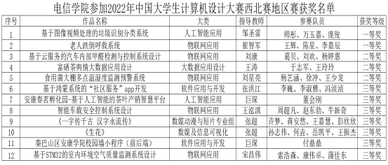 中国大学生计算机设计大赛是全国普通高校学科竞赛排行榜榜单中的赛事之一,目的是以赛促学、以赛促教、以赛促创,为国家培养德智体美劳全面发展的创新型、复合型、应用型人才服务。本次大赛以三级竞赛形式开展,校级初赛——省级复赛——国家级决赛。买球体育官方网站经过校内选拔共派出13支队伍参赛,在省级赛事(西北地区赛)中共12件作品获奖,其中一等奖2项,二等奖3项,三等奖七项。省赛获奖作品中经专家组评定,推荐6件作品参加国家级决,最终2件作品荣获国家级三等奖。本次比赛具体获奖情况如下: