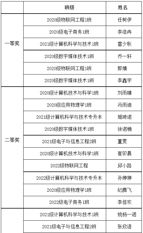 电子商务1班、计算机科学与技术1班 应用物理学1班、物联网工程1班 |
