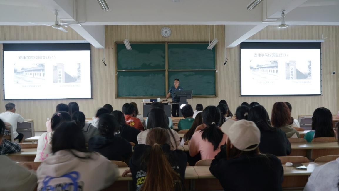 (院长陈守满讲解学校、学院发展史)