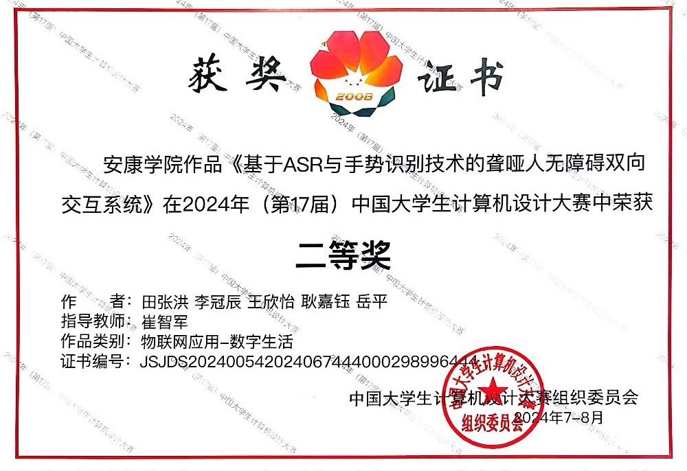 近日,2024年(第17届)中国大学生计算机设计大赛圆满落幕,我院学子在该比赛中喜获佳绩。本次大赛从2024年1月开始启动,按照校级初赛—省级决赛—全国总决赛三级竞赛形式开展。全校共60个作品报名参赛,经校内初赛选拔,我院有18个作品被推荐参加了5月在宁夏师范大学举行的西北地区赛,参赛作品全部获奖,其中,获省级一等奖1项,省级二等奖7项,省级三等奖10项。在7-8月举行的全国总决赛中,经现场答辩展示、专家组评定,我院3件作品荣获国家级二等奖1项,国家级三等奖2项。