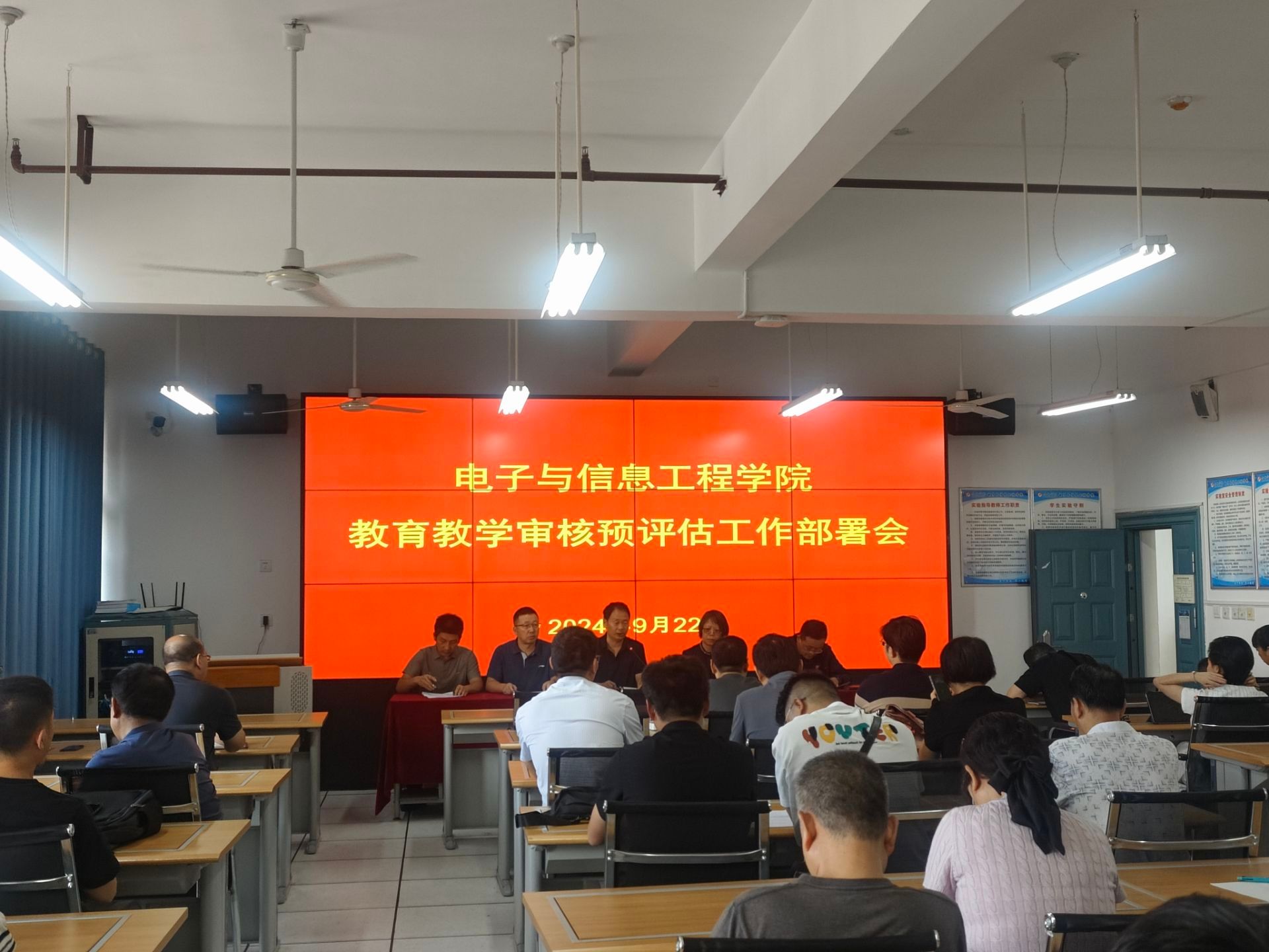 9月22日上午9:00买球体育官方网站在逸夫科技楼B602室召开迎接学校教育教学审核预评估工作部署会。会议由院长陈守满主持,买球体育官方网站全体教职工参加会议。