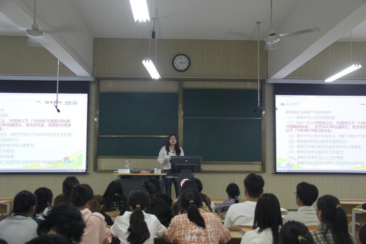 在2025年国家公务员考试即将到来之际,为给电信青年提供专业的备考指导,帮助他们更好地备战考试,提升学院应届毕业生的应考能力,买球体育官方网站特邀华图教育公考培训教师,于10月16日在1203教室以“筑梦公考,启航未来”为主题举办了2025年国家公务员考试公告解读公开课暨考试技巧与策略分享讲座。