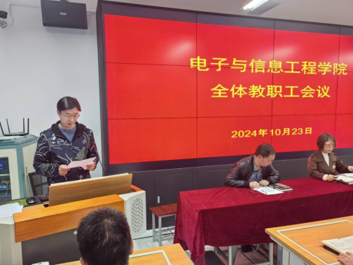 10月23日下午,买球体育官方网站在逸夫科技楼B602室召开教职工大会,宣布学校党委关于科级干部任命的决定。学院领导班子与全体教职工参加会议,会议由党总支书记于咏梅主持。