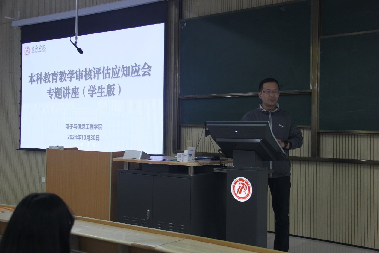 首先,宋权华副院长向同学们详细介绍了本科教育教学审核评估的重要意义、评估指标体系、学校的办学定位和特色等内容;介绍了我校的基本情况;对审核评估期间学风建设,提出了具体的要求。