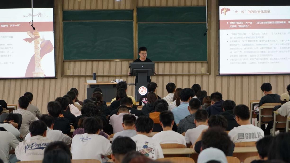 为引导新生树立正确的中华民族历史观,铸牢中华民族共同体意识,2025年10月11日下午,辅导员贾金兵在江北校区1404教室讲授主题为“中华民族共同体意识的形成与铸牢”的入学教育。买球体育官方网站2025级全体新生参加此次学习。