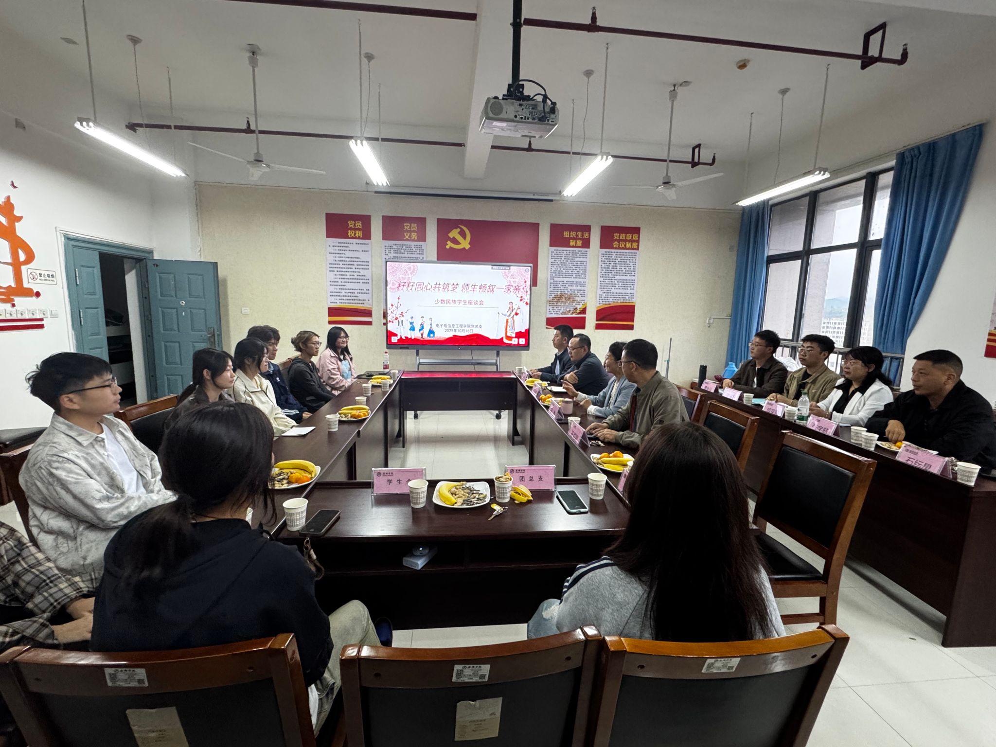为深入贯彻落实中央民族工作会议精神,推动铸牢中华民族共同体意识教育走深走实,10月16日下午,买球体育官方网站党总支在江北校区逸夫科技楼B702会议室组织召开了“籽籽同心共筑梦 师生畅叙一家亲”主题座谈会。学院领导班子、辅导员、少数民族学生及学生干部代表共聚一堂,畅谈民族团结,共话成长发展。会议由党总支副书记蔡正往主持。