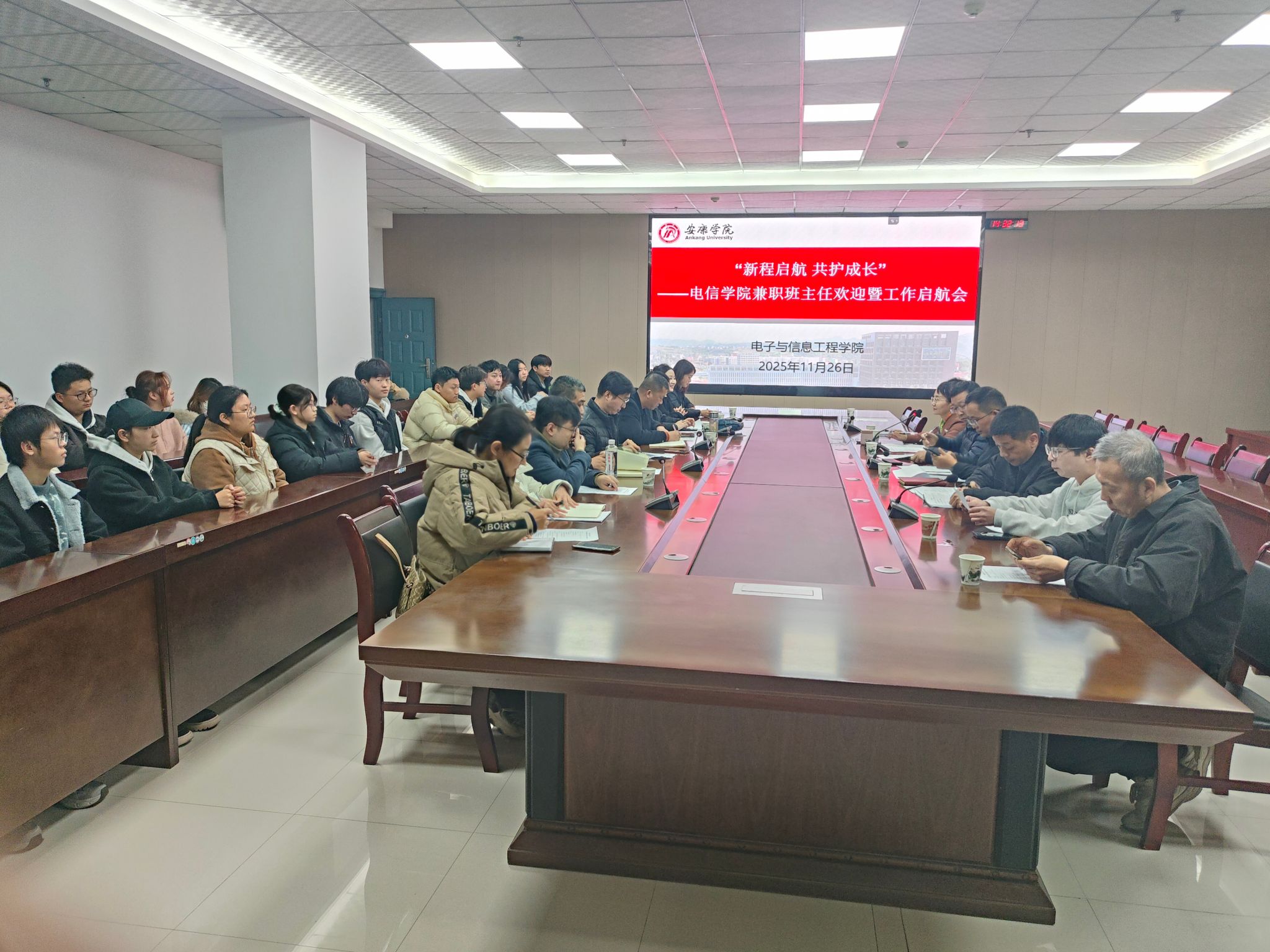 本次启航会系统构建了班主任工作的制度框架与实施路径,进一步凝聚了思想共识与行动合力。接下来,学院将围绕立德树人根本任务,持续优化班主任选聘、培训、考核与激励机制,深化班主任与辅导员之间的协同联动与信息共享,构建一体化育人新格局,为培养适应国家战略需求、具备创新精神与实践能力的高素质电子信息类人才提供坚实的制度保障与组织支撑。