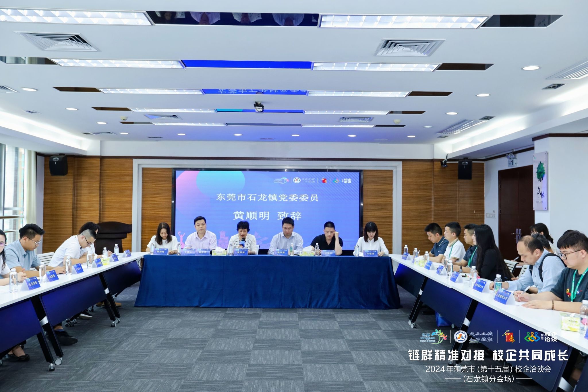 4 月 24 日,蔡正旺参加了校企洽谈石龙分会场暨高校“访企拓岗”活动。来自全国22所高校代表先后参访了东莞市石龙富华电子有限公司和广东众生药业股份有限公司,访企拓岗过程中,企业展示出的先进技术和创新的企业文化氛围。参访后,由石龙人社分局组织在广东众生药业股份有限公司会议室召开了政校企座谈,会议由东莞市人社局石龙分局局长戴新开主持,党委委员黄顺明及25家企业代表参会。石龙镇党委委员黄顺明致辞,她认为,秉持着“人才是第一资源”理念,在政府的大力推动下,高校与企业将为东莞未来的发展注入新的动力。