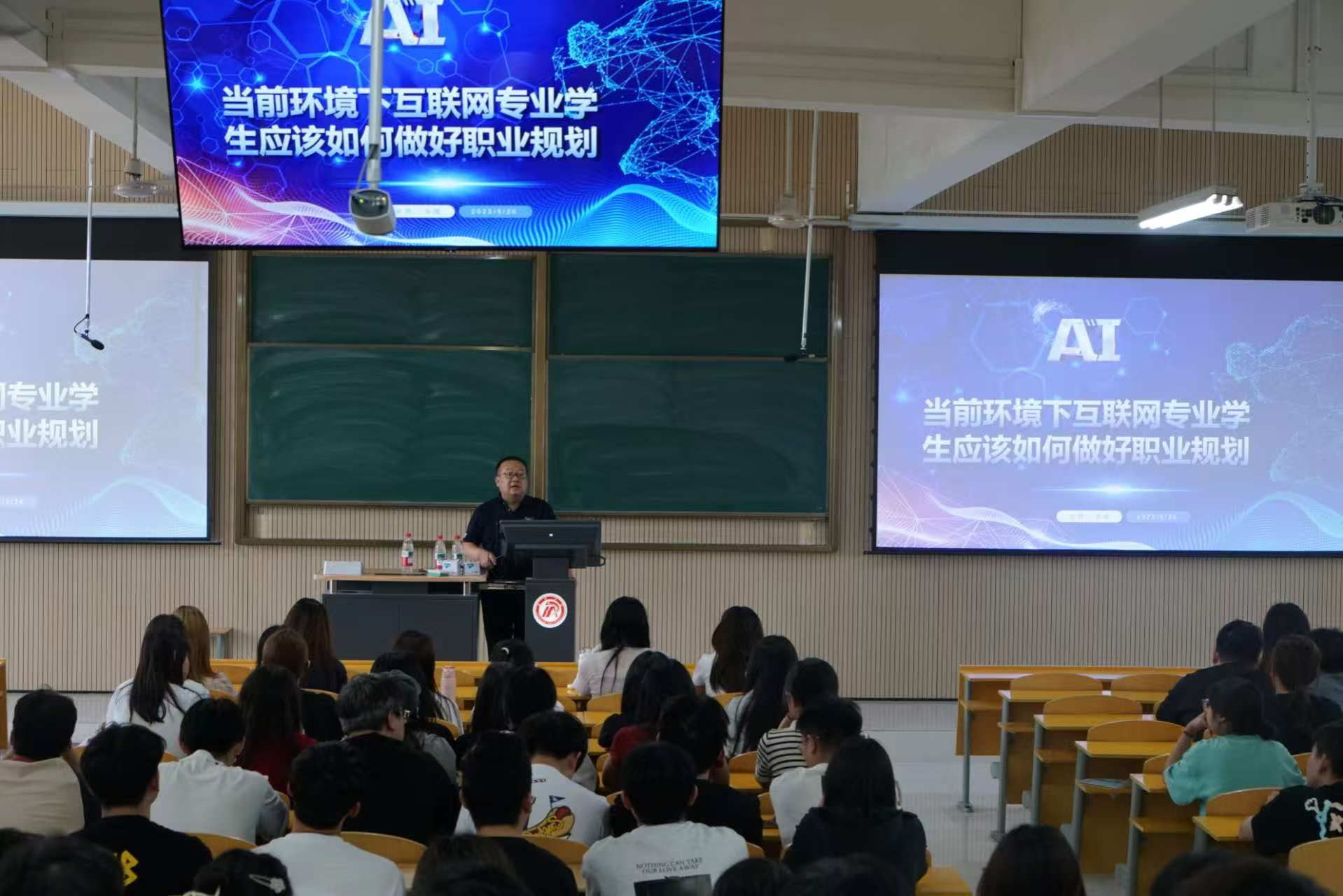 宣讲过程中,李经理结合当下就业形势与互联网行业发展现状,为同学们提供了全面且实用的职业规划建议,助力大家明晰职业方向。他指出,当前就业市场竞争激烈,高校毕业生数量持续增长,就业压力显著。然而,互联网行业凭借其创新活力和持续发展的态势,依然为专业人才提供了丰富的机会。这就要求互联网专业的学生不仅要掌握扎实的专业知识,还需具备不断学习和适应变化的能力。